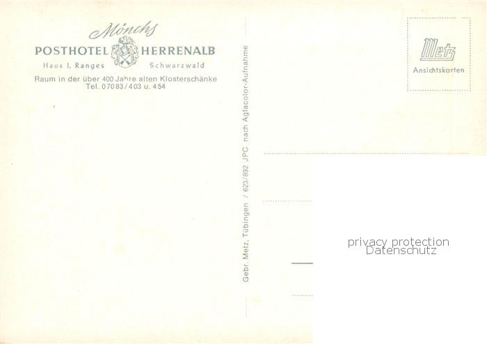 73856803 Herrenalb Bad Herrenalb Moenchs Posthotel Herrenalb Raum in der alten Klosterschaenke postalisch nicht gelaufen Erhaltung siehe scans [WerneD78] KatCode: 11110008235033