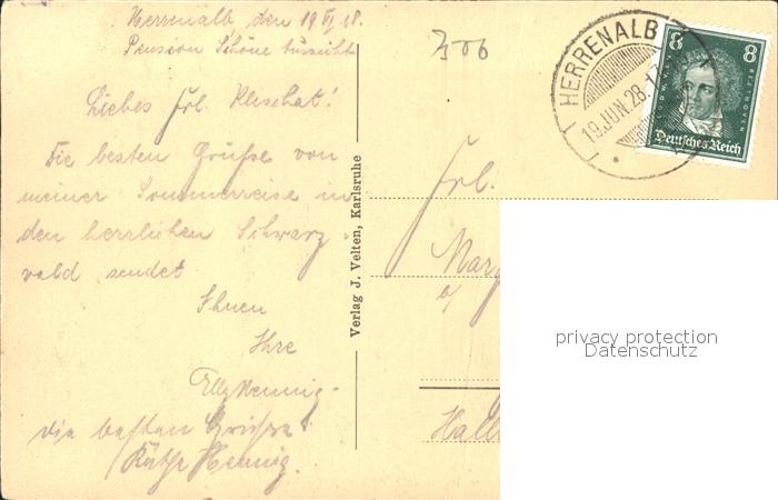 31722173 alte Postkarte Herrenalb Bad Herrenalb vom Falkenstein gesehen postalisch gelaufen Erhaltung siehe scans KatCode: 11110008235033