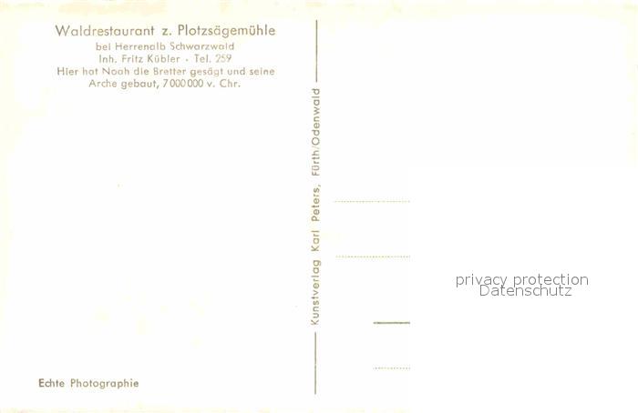 72890446 Herrenalb Bad Herrenalb Waldrestaurant zur Plotzsaegemuehle postalisch nicht gelaufen Erhaltung siehe scans [FriedD77] KatCode: 11110008235033