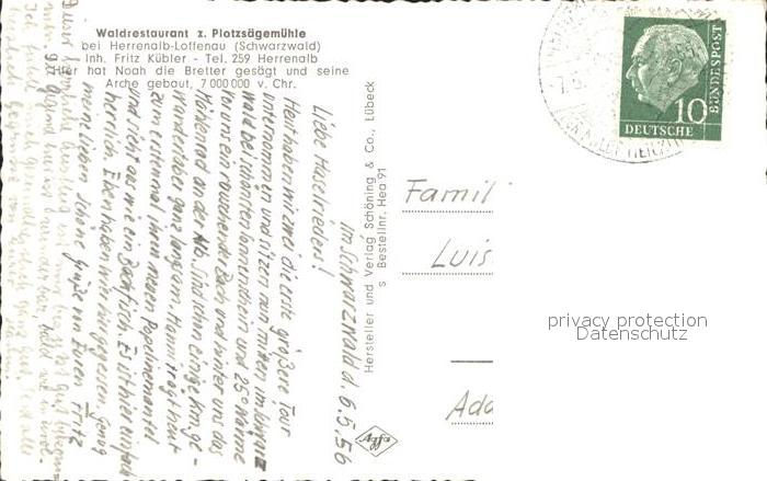 72186601 alte Postkarte Herrenalb Bad Herrenalb Waldrestaurant zur Plotzsaegemuehle postalisch gelaufen Erhaltung siehe scans KatCode: 11110008235033