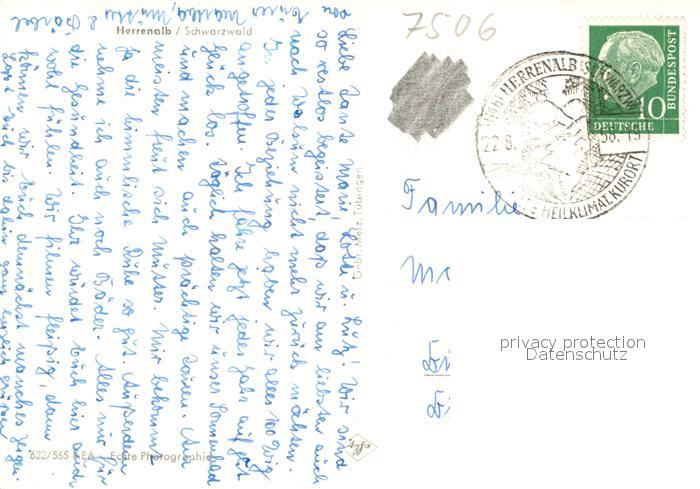 73282622 alte Postkarte Herrenalb Bad Herrenalb postalisch gelaufen Erhaltung siehe scans [NatalD47] KatCode: 11110008235033