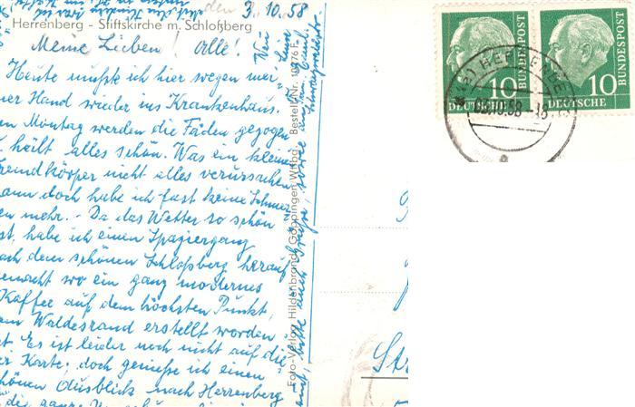 73943647 alte Postkarte Herrenberg Gaeu BW Stiftskirche mit Schlossberg postalisch gelaufen Erhaltung siehe scans [WerneD78] KatCode: 11110008115021