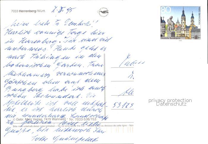 72377663 alte Postkarte Herrenberg Gaeu Markt postalisch gelaufen Erhaltung siehe scans KatCode: 11110008115021