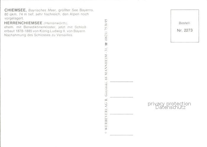 72370385 Herrenchiemsee Benediktinerkloster Schloss postalisch nicht gelaufen Erhaltung siehe scans KatCode: 11110009187123