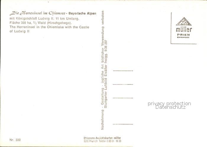 71899273 Herrenchiemsee Koenigsschloss Ludwig II Bayerischen Alpen Fliegeraufnahme postalisch nicht gelaufen Erhaltung siehe scans KatCode: 11110009187123