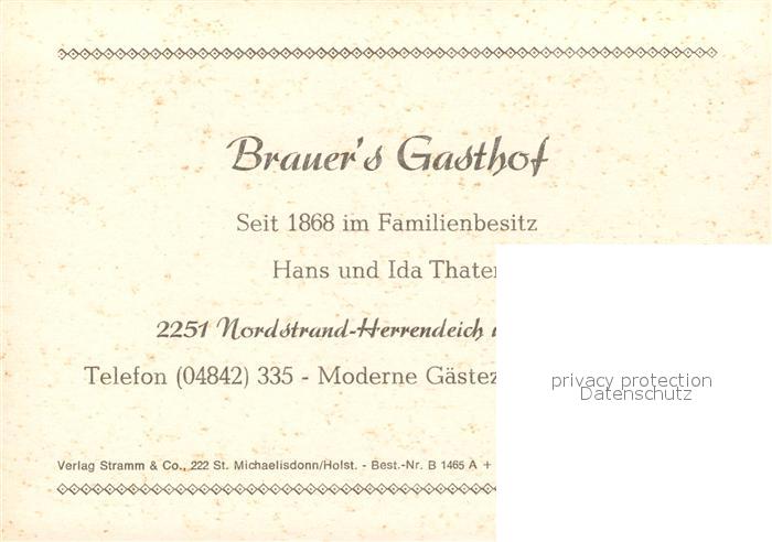 73544848 Herrendeich Brauer’s Gasthof Restaurant postalisch nicht gelaufen Werbekarte (keine Postkarte) Erhaltung siehe scans [FriedD77] KatCode: 11110001054091