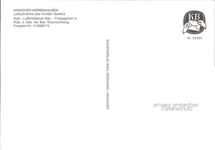 72069403 Herrenhausen Hannover Fliegeraufnahme des Gr Gartens postalisch nicht gelaufen Erhaltung siehe scans KatCode: 11110003241001