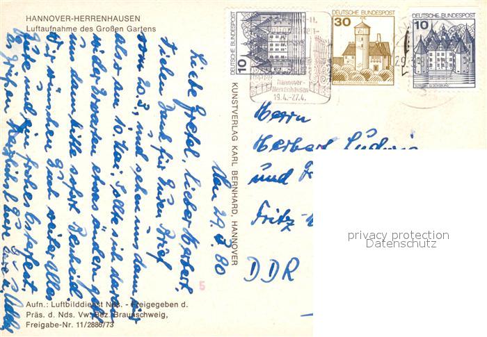 73122058 alte Postkarte Herrenhausen Hannover Fliegeraufnahme Grosse Garten postalisch gelaufen Erhaltung siehe scans [NatalD47] KatCode: 11110003241001