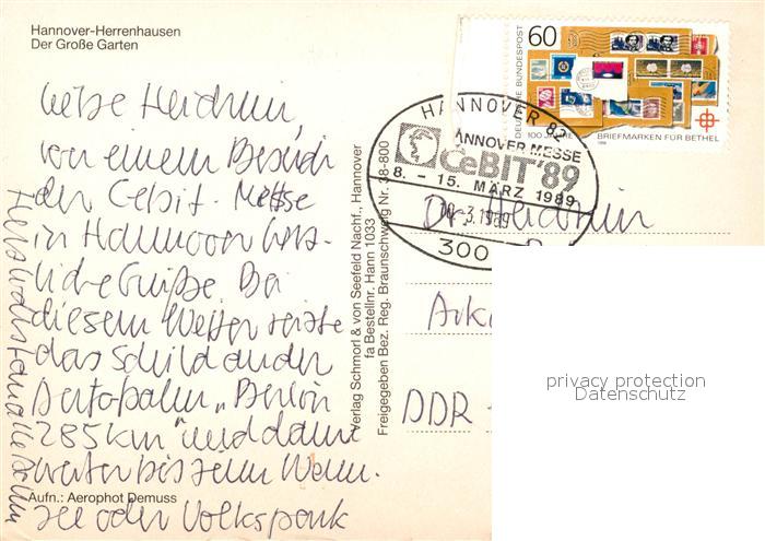 73128438 alte Postkarte Herrenhausen Hannover Fliegeraufnahme Grosse Garten postalisch gelaufen Erhaltung siehe scans [NatalD47] KatCode: 11110003241001