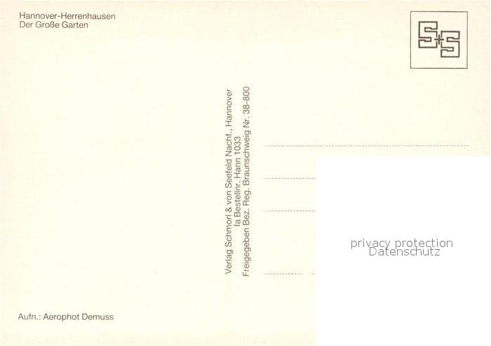 73031349 Herrenhausen Hannover Fliegeraufnahme Grosser Garten postalisch nicht gelaufen Erhaltung siehe scans [KathaD81] KatCode: 11110003241001