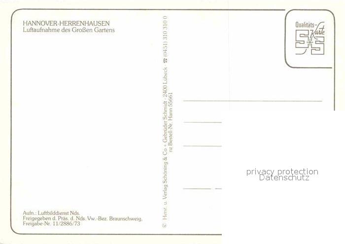 72665549 Herrenhausen Hannover Fliegeraufnahme Grosser Garten postalisch nicht gelaufen Erhaltung siehe scans [AndreD76] KatCode: 11110003241001