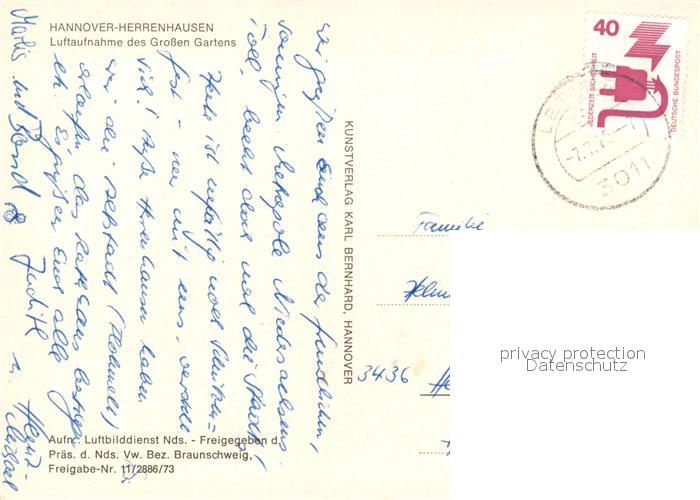 73076968 alte Postkarte Herrenhausen Hannover Fliegeraufnahme Grosser Garten postalisch gelaufen Erhaltung siehe scans [KathaD81] KatCode: 11110003241001
