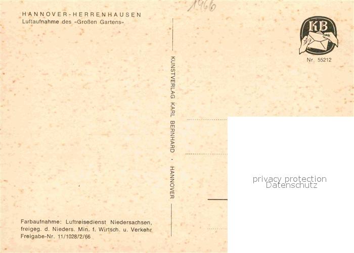 72897956 Herrenhausen Hannover Grosser Garten Fliegeraufnahme postalisch nicht gelaufen Erhaltung siehe scans [FriedD77] KatCode: 11110003241001