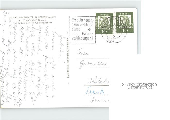 72331621 alte Postkarte Herrenhausen Hannover Musik und Theater postalisch gelaufen Erhaltung siehe scans KatCode: 11110003241001