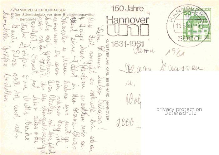 72897957 alte Postkarte Herrenhausen Hannover Schmuckplatz vor dem Bibliothekspavillon im Berggarten postalisch gelaufen Erhaltung siehe scans [FriedD77] KatCode: 11110003241001