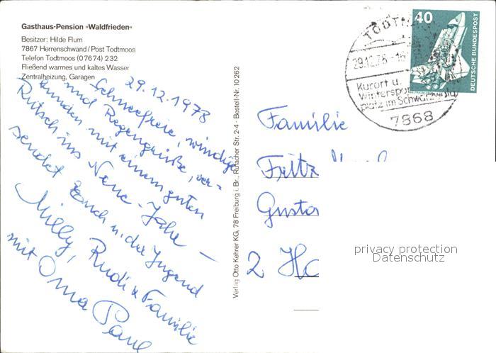 72024026 alte Postkarte Herrenschwand Gasthaus Pension Waldfrieden postalisch gelaufen Erhaltung siehe scans KatCode: 11110008336087