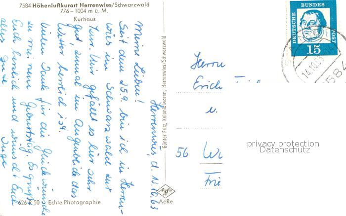 73831909 alte Postkarte Herrenwies Forbach Kurhaus postalisch gelaufen Erhaltung siehe scans [WerneD78] KatCode: 11110008216013