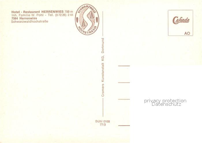 73544880 Herrenwies Hotel Restaurant Herrenwies Schwarzwaldhochstrasse postalisch nicht gelaufen Erhaltung siehe scans [FriedD77] KatCode: 11110008216013