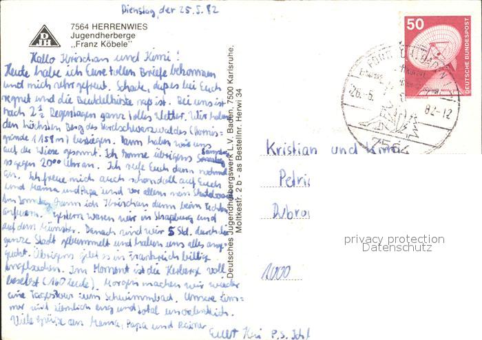 72067154 alte Postkarte Herrenwies Jugendherberge Franz Koebele postalisch gelaufen Erhaltung siehe scans KatCode: 11110008216013
