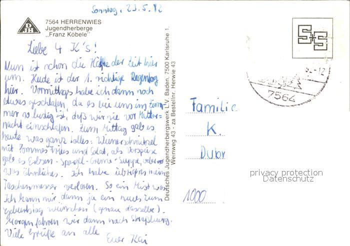 72067742 alte Postkarte Herrenwies Jugendherberge Franz Koebele postalisch gelaufen Erhaltung siehe scans KatCode: 11110008216013