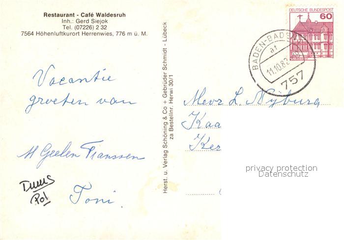 72932497 alte Postkarte Herrenwies Restaurant Waldesruh Fliegeraufnahme postalisch gelaufen Erhaltung siehe scans [WerneD78] KatCode: 11110008216013