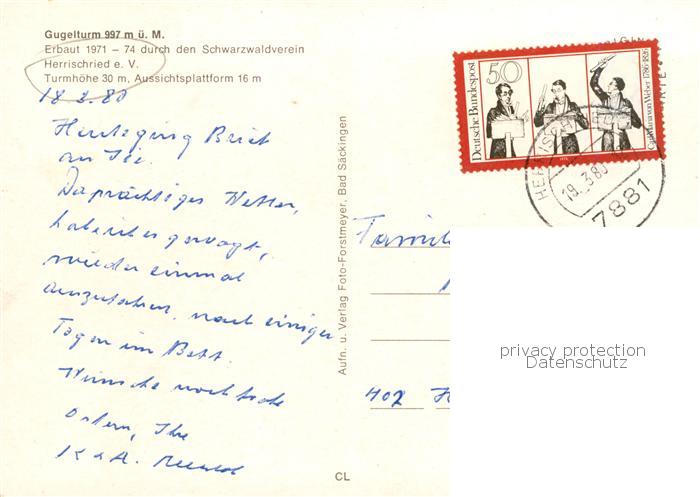 73829922 alte Postkarte Herrischried Gugelturm postalisch gelaufen Erhaltung siehe scans [WerneD78] KatCode: 11110008337049