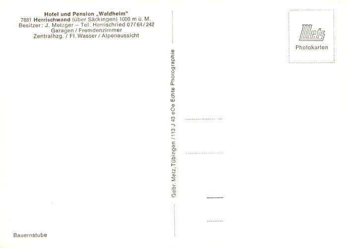 73894584 Herrischried Hotel Pension Waldheim Gaststube postalisch nicht gelaufen Erhaltung siehe scans [WerneD78] KatCode: 11110008337049