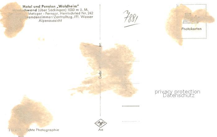 42949934 Herrischried Hotel Pension Waldheim postalisch nicht gelaufen Erhaltung siehe scans [AndreD76] KatCode: 11110008337049
