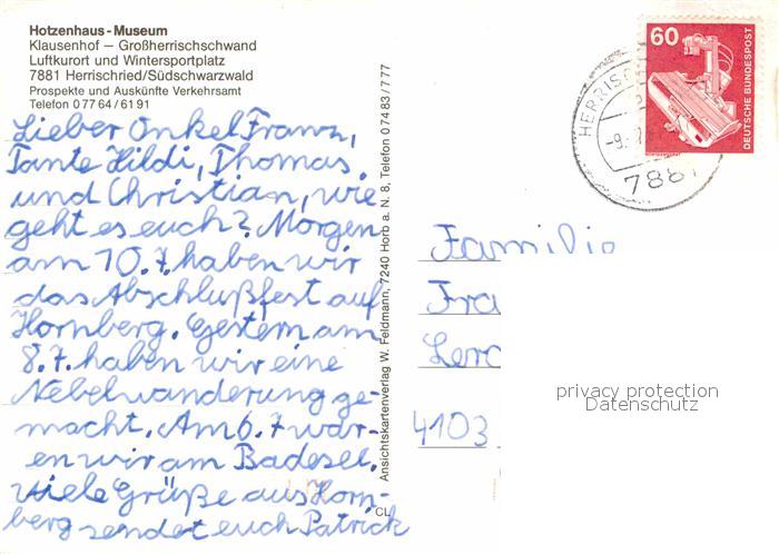 72667240 alte Postkarte Herrischried Hotzenhaus Klausenhof postalisch gelaufen Erhaltung siehe scans [LiesaD40] KatCode: 11110008337049