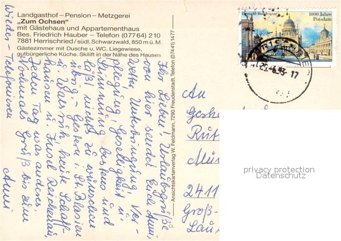 73641095 alte Postkarte Herrischried Landgasthof Pension Zum Ochsen Restaurant Terrasse postalisch gelaufen Erhaltung siehe scans [WerneD78] KatCode: 11110008337049