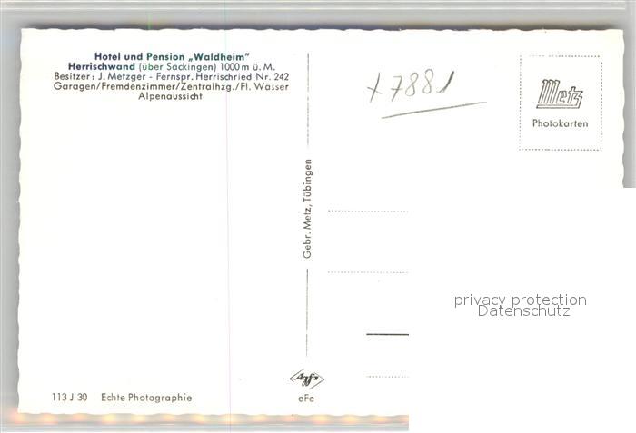 42952181 Herrischwand Hotel Pension Waldheim postalisch nicht gelaufen Erhaltung siehe scans [AndreD76] KatCode: 11110008337049