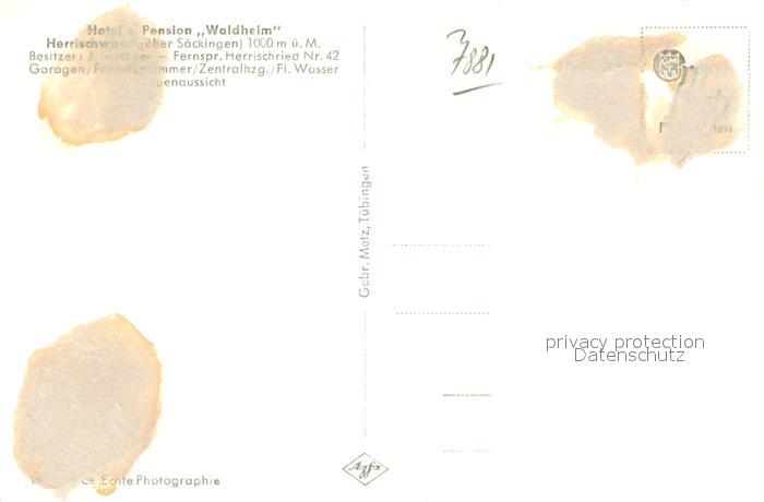 42949954 Herrischwand Hotel Pension Waldheim postalisch nicht gelaufen Erhaltung siehe scans [AndreD76] KatCode: 11110008337049