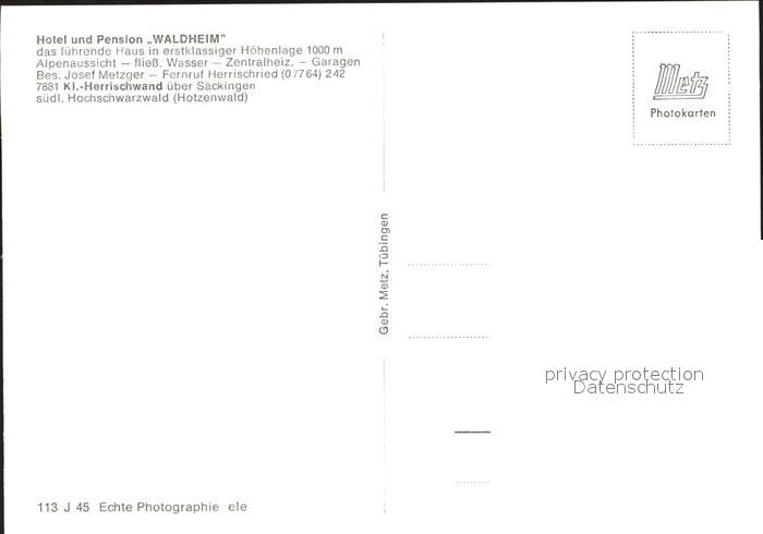 41784513 Herrischwand Hotel Pension Waldheim postalisch nicht gelaufen Erhaltung siehe scans KatCode: 11110008337049