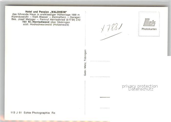 42952257 Herrischwand Hotel Pension Waldheim postalisch nicht gelaufen Erhaltung siehe scans [AndreD76] KatCode: 11110008337049