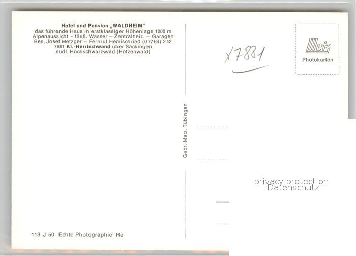42952256 Herrischwand Hotel Pension Waldheim postalisch nicht gelaufen Erhaltung siehe scans [AndreD76] KatCode: 11110008337049