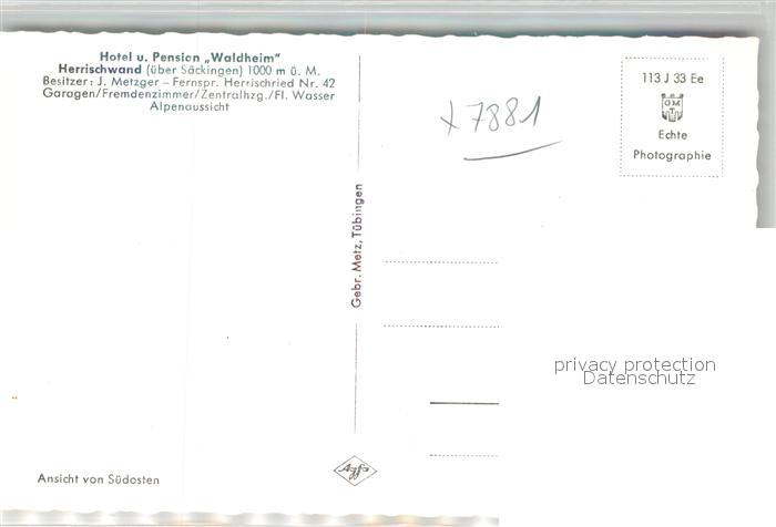42952186 Herrischwand Hotel Pension Waldheim postalisch nicht gelaufen Erhaltung siehe scans [AndreD76] KatCode: 11110008337049