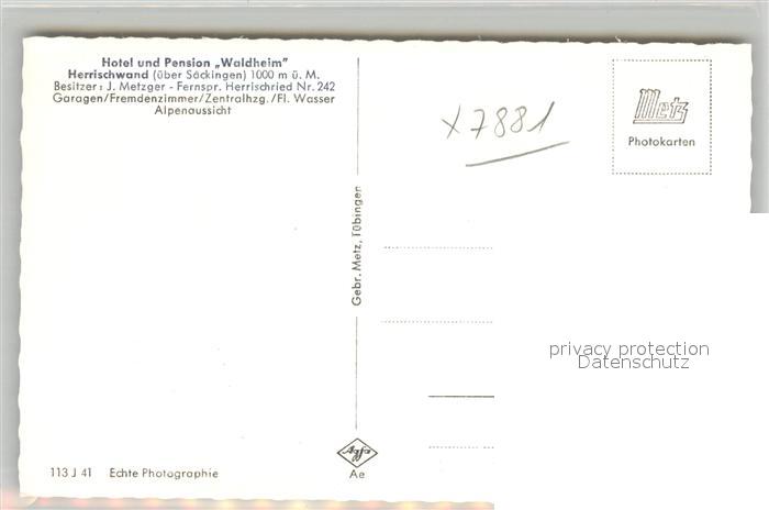 42952183 Herrischwand Hotel Pension Waldheim postalisch nicht gelaufen Erhaltung siehe scans [AndreD76] KatCode: 11110008337049