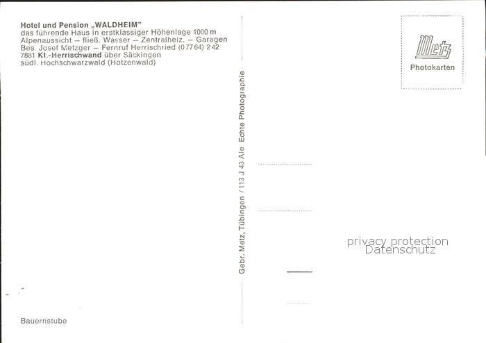 41784511 Herrischwand Hotel Pension Waldheim Bauernstube postalisch nicht gelaufen Erhaltung siehe scans KatCode: 11110008337049