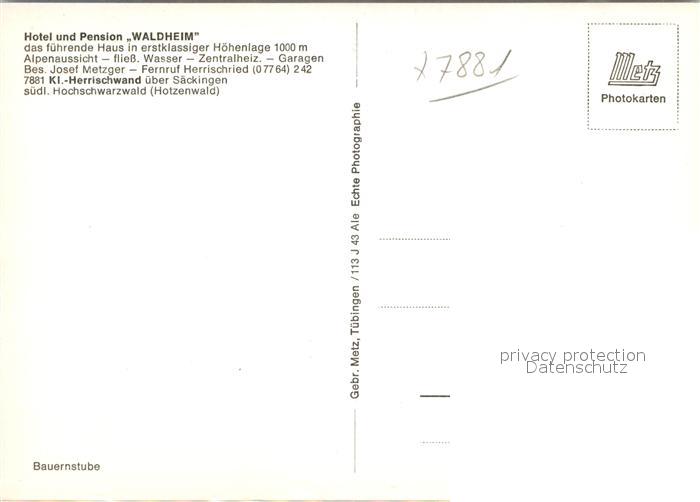 42952261 Herrischwand Hotel Pension Waldheim postalisch nicht gelaufen Erhaltung siehe scans [AndreD76] KatCode: 11110008337049