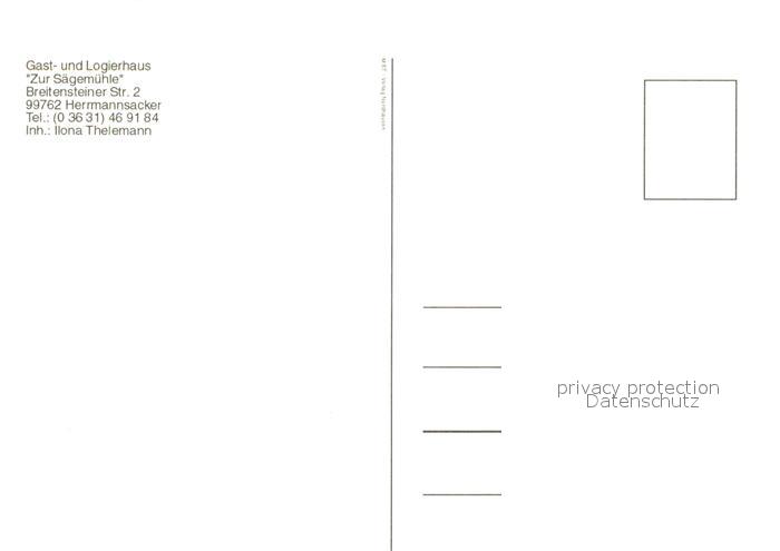 73614202 Herrmannsacker Gast und Logierhaus Zur Saegemuehle Nordhaeuser Talsperre Ebersburg postalisch nicht gelaufen Erhaltung siehe scans [WerneD78] KatCode: 11110016062018
