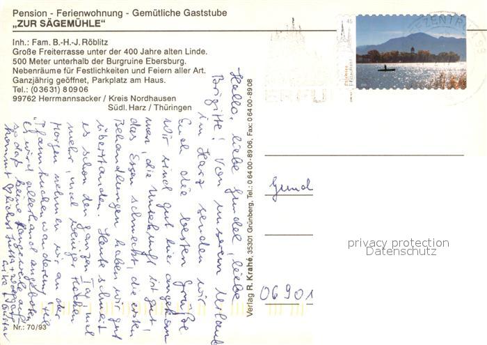 73654175 alte Postkarte Herrmannsacker Gasthaus Pension Zur Saegemuehle Ferienwohnungen Burgruine Ebersburg postalisch gelaufen Erhaltung siehe scans [FriedD77] KatCode: 11110016062018