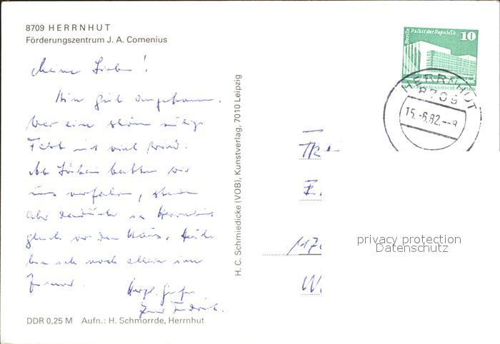 72026870 alte Postkarte Herrnhut Foerderungszentrum J. A. Comenius postalisch gelaufen Erhaltung siehe scans KatCode: 11110014286160