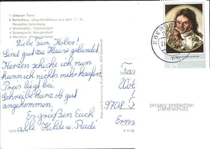 72381959 alte Postkarte Herrnhut Spreequelle Neugersdorf Loebauer Turm Windmuehle Kottmarsdorf postalisch gelaufen Erhaltung siehe scans KatCode: 11110014286160