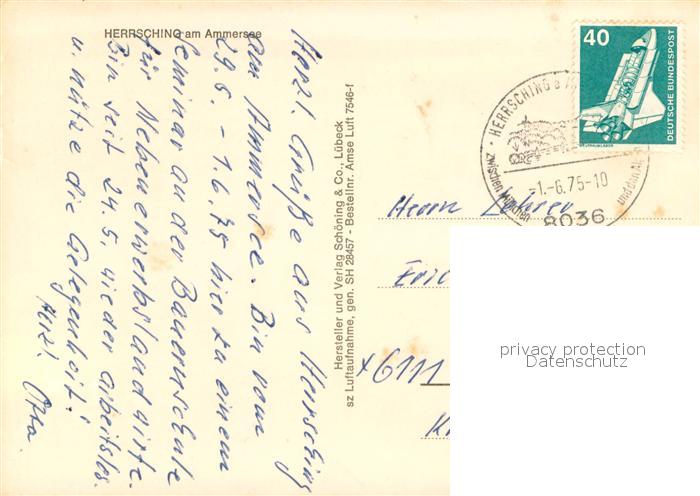 73720923 alte Postkarte Herrsching Ammersee Fliegeraufnahme postalisch gelaufen Erhaltung siehe scans [WerneD78] KatCode: 11110009188124