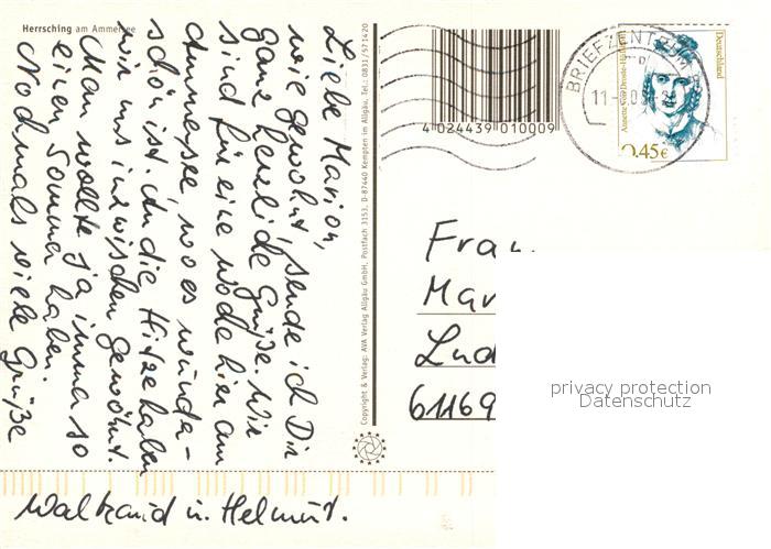 73224561 alte Postkarte Herrsching Ammersee Fliegeraufnahme postalisch gelaufen Erhaltung siehe scans [KathaD81] KatCode: 11110009188124