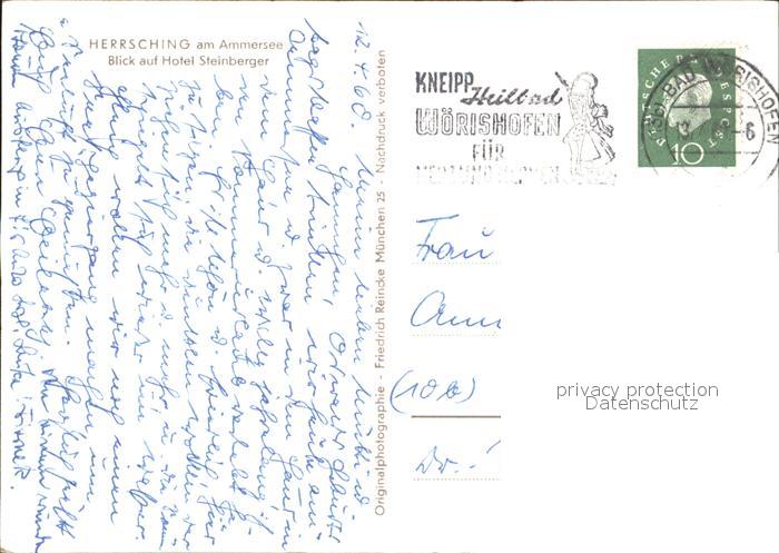 72200905 alte Postkarte Herrsching Ammersee Hotel Steinberger postalisch gelaufen Erhaltung siehe scans KatCode: 11110009188124