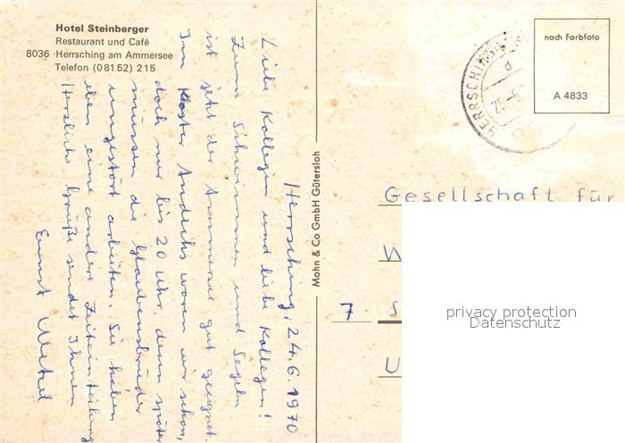 72685084 alte Postkarte Herrsching Ammersee Hotel Steinberger Restaurant Cafe postalisch gelaufen Erhaltung siehe scans [LiesaD40] KatCode: 11110009188124