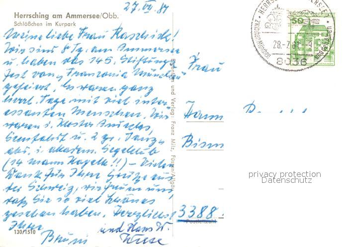 73120203 alte Postkarte Herrsching Ammersee Schloesschen Kurpark postalisch gelaufen Erhaltung siehe scans [KathaD81] KatCode: 11110009188124