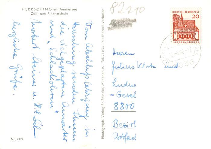 73880225 alte Postkarte Herrsching Ammersee Zoll und Finanzschule postalisch gelaufen Erhaltung siehe scans [WerneD78] KatCode: 11110009188124