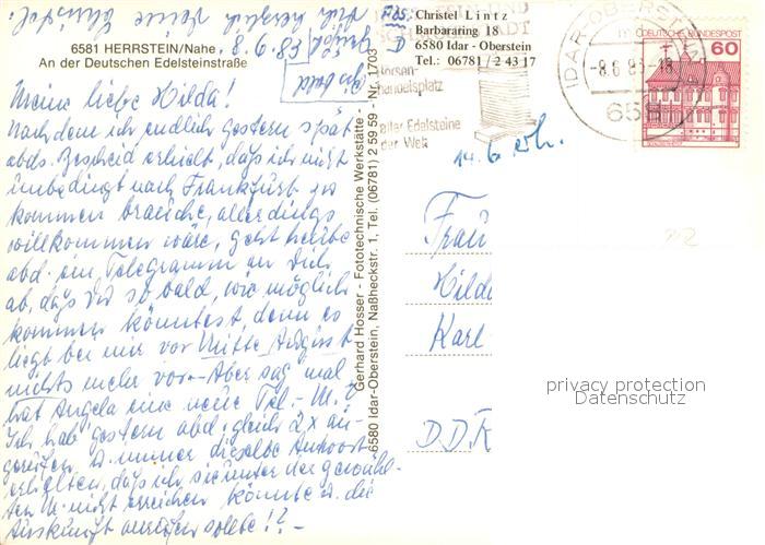73672751 alte Postkarte Herrstein Panorama Burg Fachwerkhaus Stadttor Burgturm postalisch gelaufen Erhaltung siehe scans [WerneD78] KatCode: 11110007134039